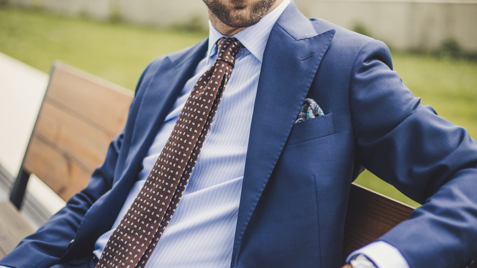 Bielou košeľou s prúžkom dodáte svojmu outfitu ďalší vzor. Takáto košeľa pôsobí spravidla menej formálne ako čisto biela, stále ale dosť na to, aby ste ju nosili k obleku. Siahnite skôr po jemnejších prúžkoch, klasickom tvrdom golieri a manžetách na klasické gombíky, vyhnite sa extrémnej extravagancii, na ňu bude priestor neskôr.
