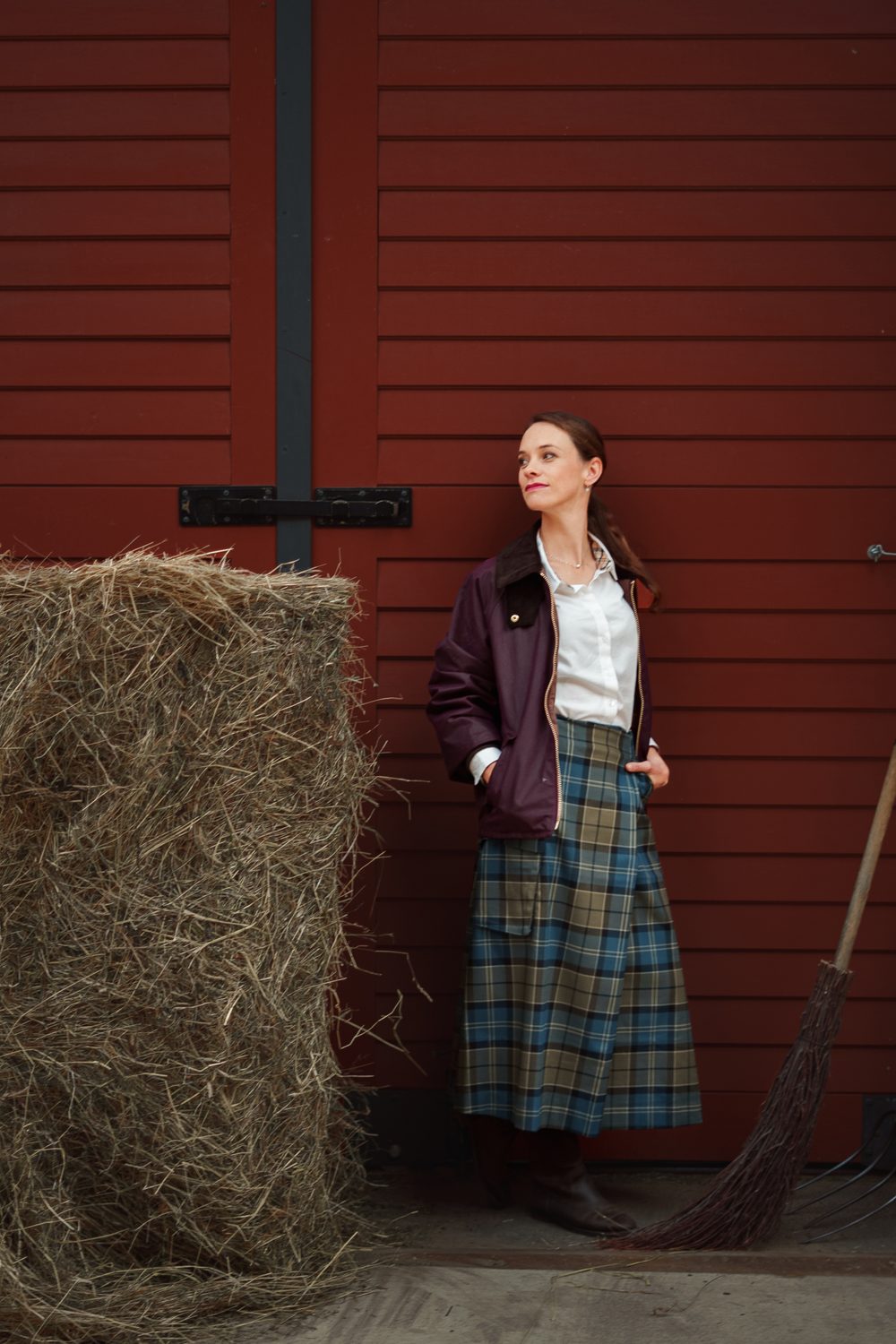 - Rozviatu tartanovú maxi sukňu Barbour Wilma Tartan Maxi Skirt