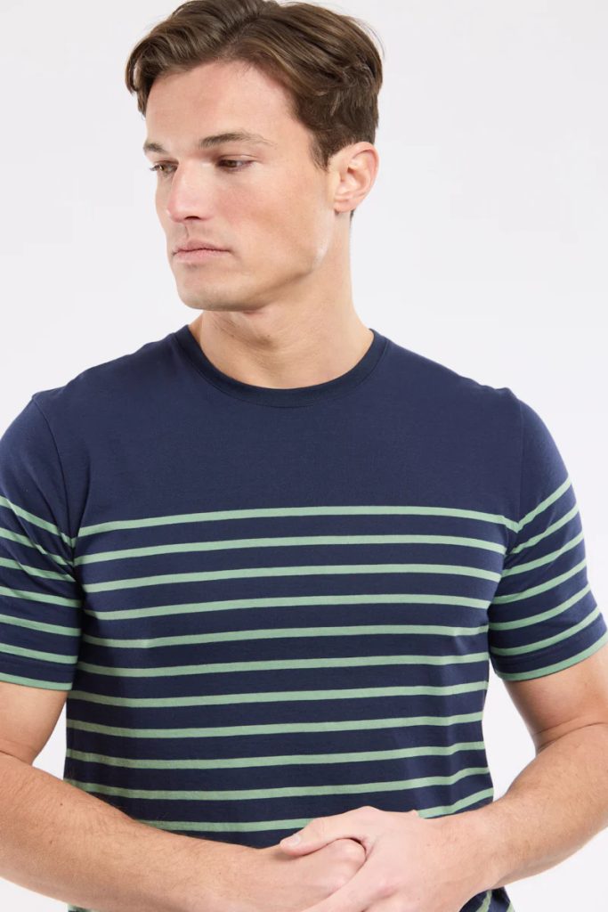 Z francúzskeho Bretónska sme pre vás priviezli niekoľko tričiek, ktoré sú vhodné na jar a na leto. Toto charakteristicky pruhované tričko tejto námorníckej značky je vyrobené z čistej bavlny, z ľahkého česaného (tj. ako flanel) džerseja.
