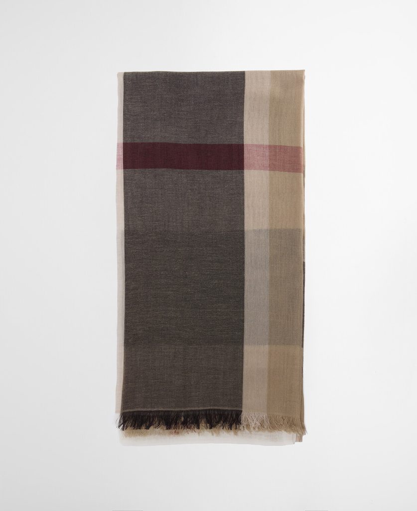 Ľahká bavlnená šatka Esther v tmavšom tartanovom vzore (Rosewood Tartan), ktorého lem zdobia veľmi, veľmi jemné strapce. Vďaka štedrým rozmerom (meter na dva) ho možno nosiť ako šatku, pareo na pláž, či sárong.