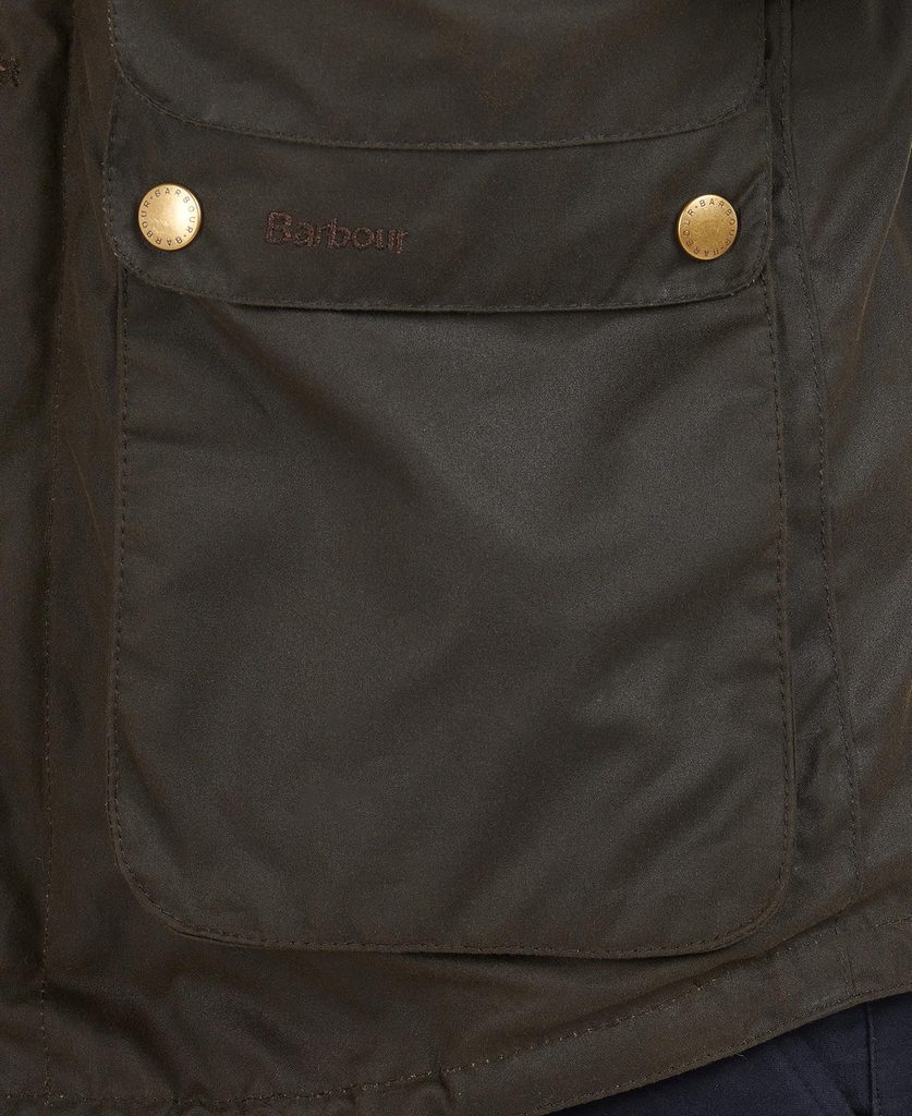 Nechýba skryté zapínanie na obojstranný zips, vonkajšie zapínanie na gombíky ani obligátne logo Barbour nad jedným z vreciek.