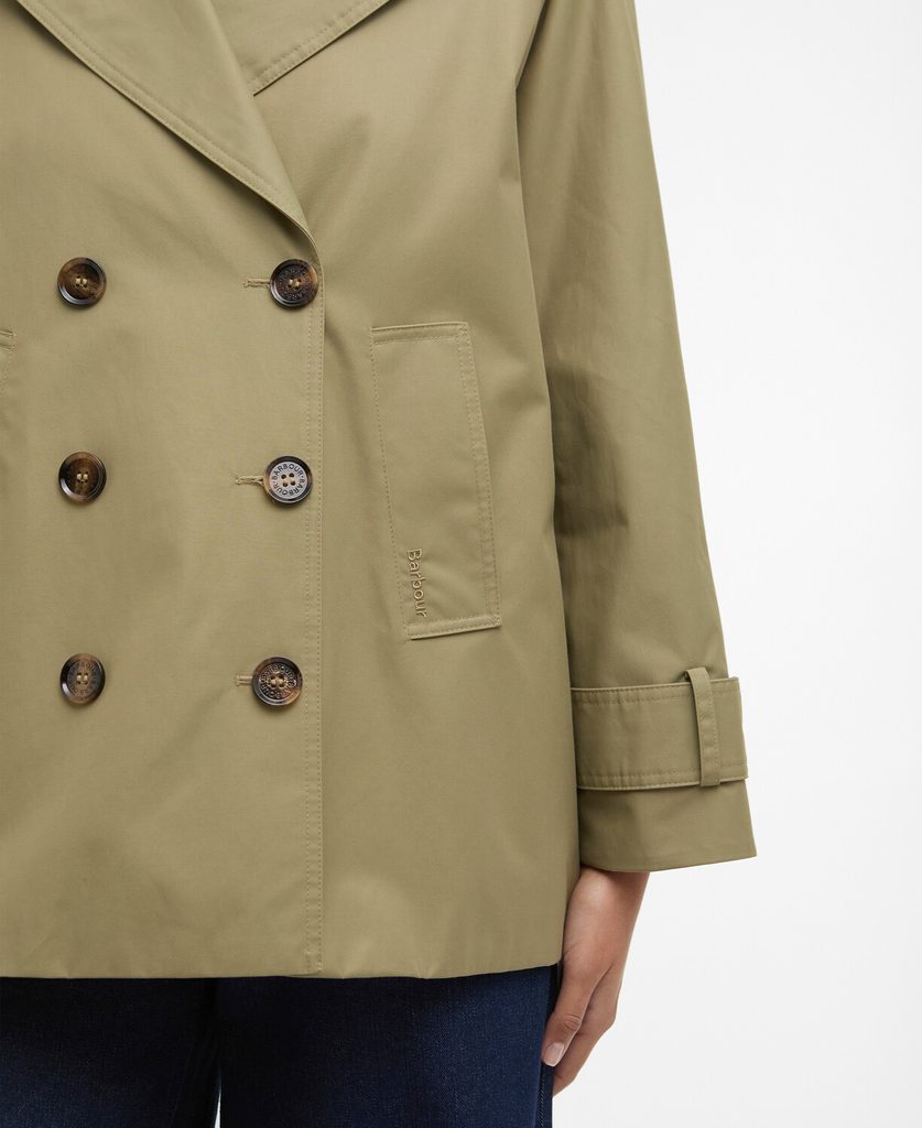 Skrátený dvojradový kabát v štýle macu – minimalistického, rovného kabátu – s vodeodolnou úpravou. Celý jeho vzhľad sa točí práve okolo dvojradového zapínania: výsledkom sú široké klopy a golier, veľké korytnačinové gombíky, ale aj manžety na rukávoch, prevzaté z trenčkotov. Doplnené o dve vsadené vrecká. A ako každá Barbour bunda, aj táto má svoj tartan: na sedlovej časti podšívky.