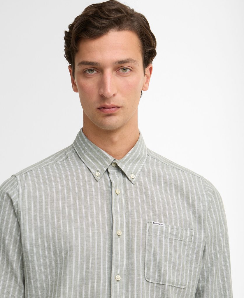 Barbour Nelson Striped Long-Sleeved Tailored Shirt — Bleached Olive