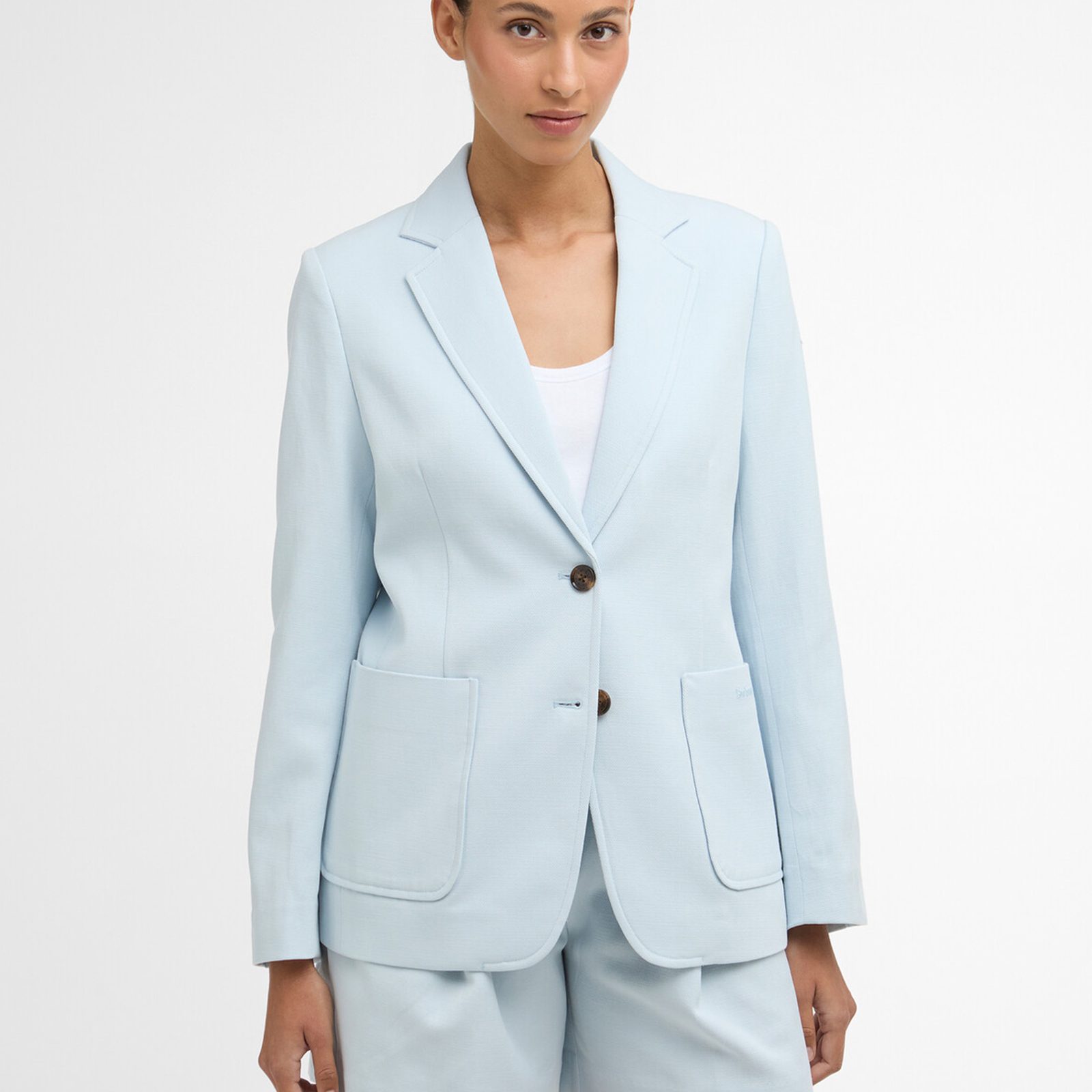 Najnovší letný prírastok do dámskeho radu elegantného oblečenia od britského Barbouru. Ľahký dámsky blazer Salthill je vyrobený v krásnej bledo modrej farbe z bavlnenej zmesi s mäkkou konštrukciou, ktorá nezviera v ramenách.