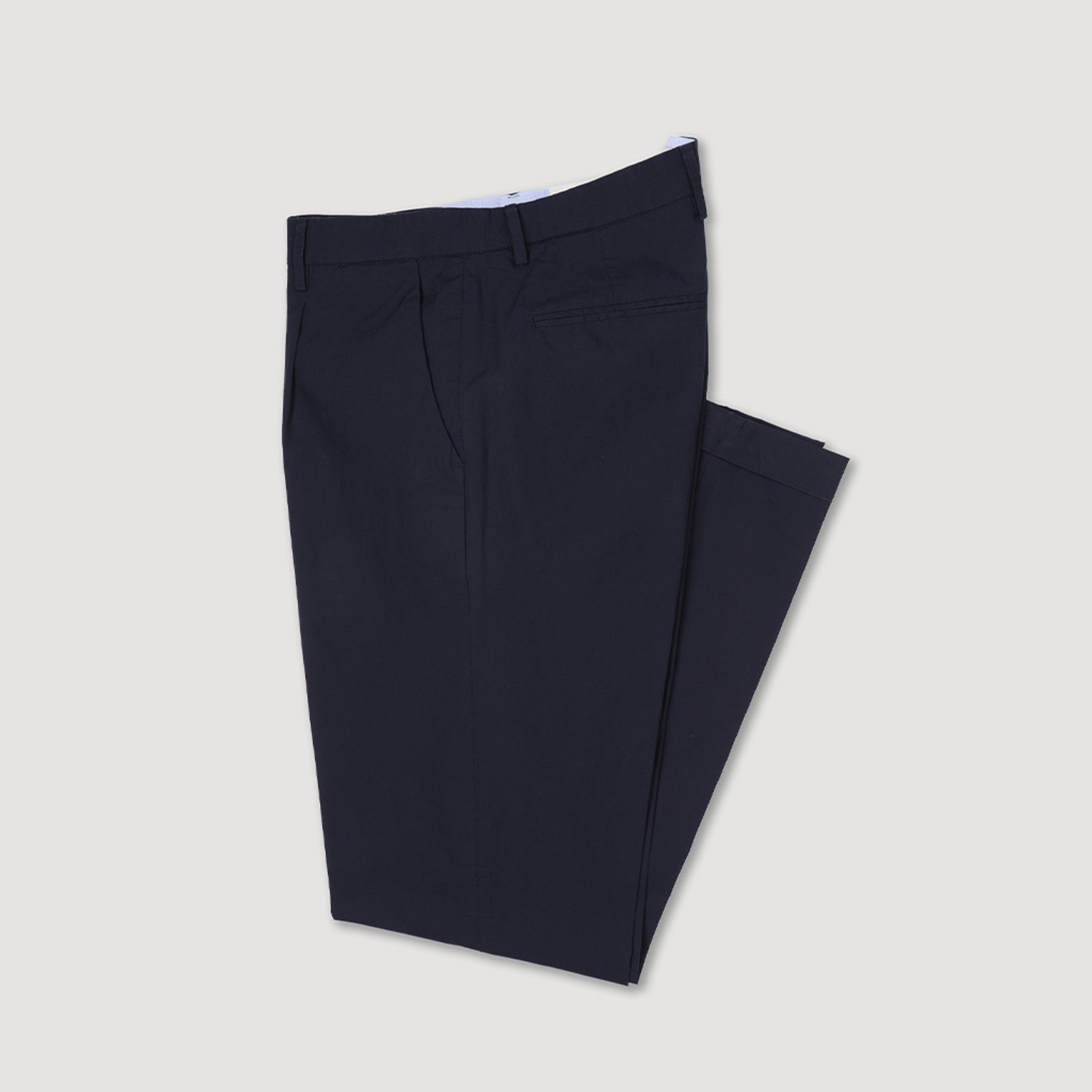 Poriadny old-money variant klasických chinos nohavíc. Tieto sú obohatené o zámiky a francúzske zapínanie, to dobré z klasiky však tiež zostáva: dvojica predných a dvojica zadných vreciek, očká na opasok, prímes strečového elastanu pre celodenné pohodlie a predovšetkým všeladiaca Navy farba.