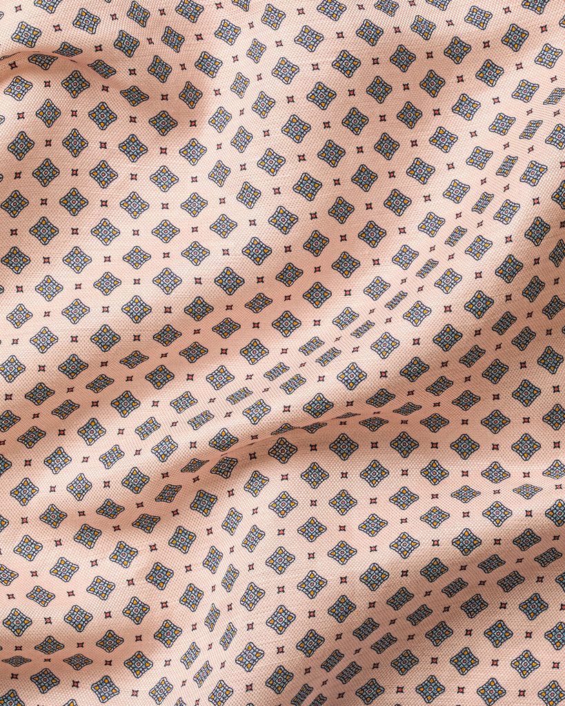Už na prvý dotyk prémiová vreckovka zo zmesi ľanu a hodvábu, vhodná nielen do letných sák, ktorá je ku všetkému ešte vyzdobená prekrásnym geometrickým vzorom.