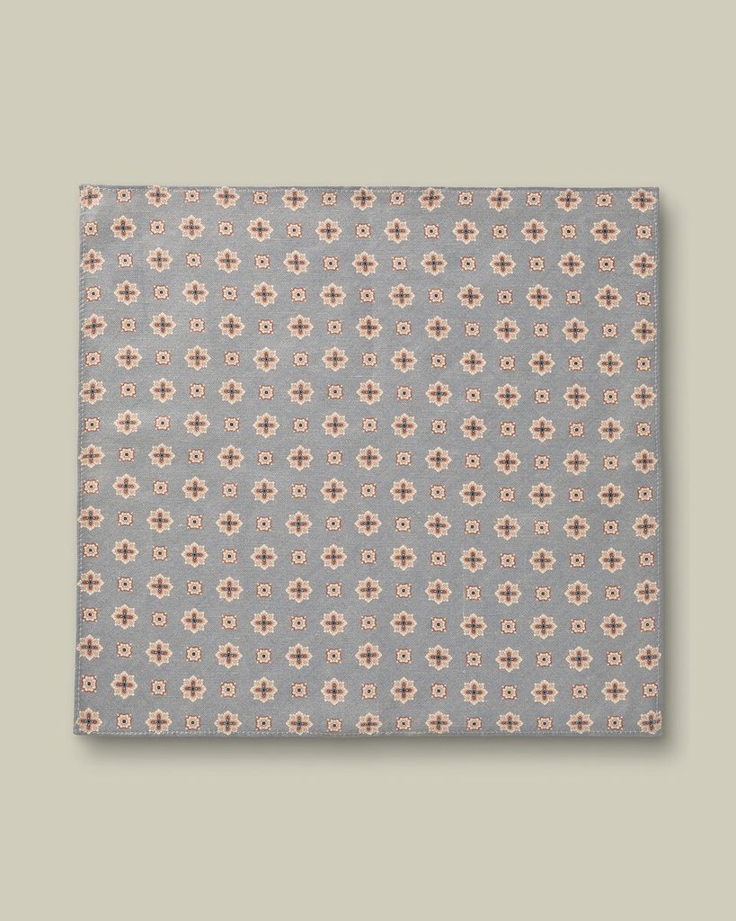 Už na prvý dotyk prémiová vreckovka zo zmesi ľanu a hodvábu, vhodná nielen do letných sák, ktorá je ku všetkému ešte vyzdobená prekrásnym geometrickým vzorom.