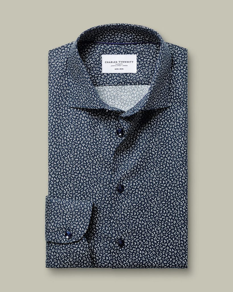 Tmavá kancelárska košeľa, ktorá vyžaruje charakter. Hlavnou dominantou tohto kúsku je nepochybne drobná potlač po celom tele. Okrem toho ide však o spoľahlivú klasiku: bežný golier, dlhé rukávy na klasické gombíky so štýlovo zaoblenými lemami. Nesmie chýbať ani úprava bez žehlenia, vďaka ktorej už do práce rozhodne neskoro neprídete.