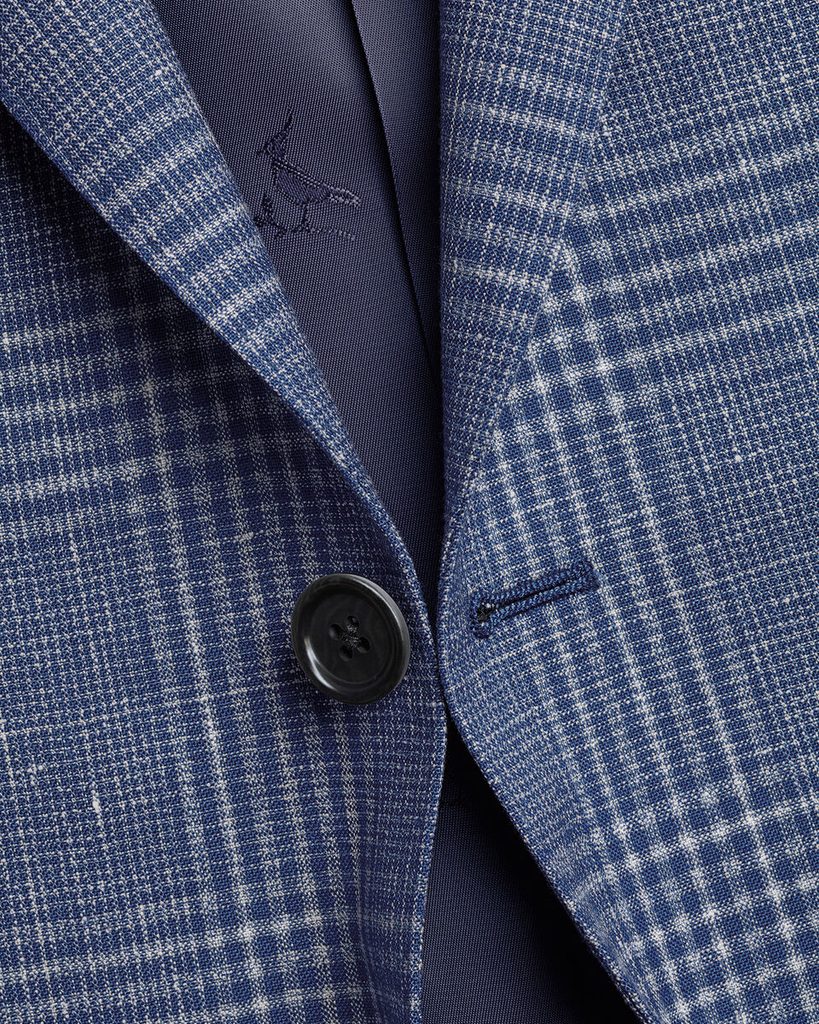 Čaká vás klasická konštrukcia s jednoradovým zapínaním s dvomi gombíkmi, s dvoma rázporkami, podšívkou zdobenou vtákom a s čiernymi gombíkmi, kvôli ktorým neumrelo jediné divoké zviera. (A ani zviera v zajatí, ako je nám známe.) Skvele sa hodí na letné formálne príležitosti – na open air divadlo je ako stvorené.