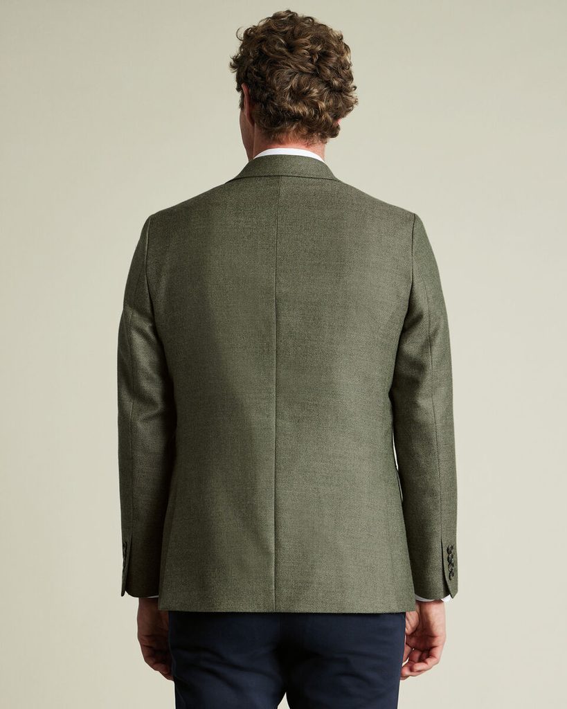 Okrem toho potešia štandardné vychytávky Charlesa Tyrwhitta: mramorové gombíky z udržateľných materiálov (nezomreli nosorožce a ani nebudete vdychovať mikroplasty) na jednoradovom zapínaní aj okrasných manžetách, menej vypchaté ramená pre prirodzenejší vzhľad, dva zadné rázporky.