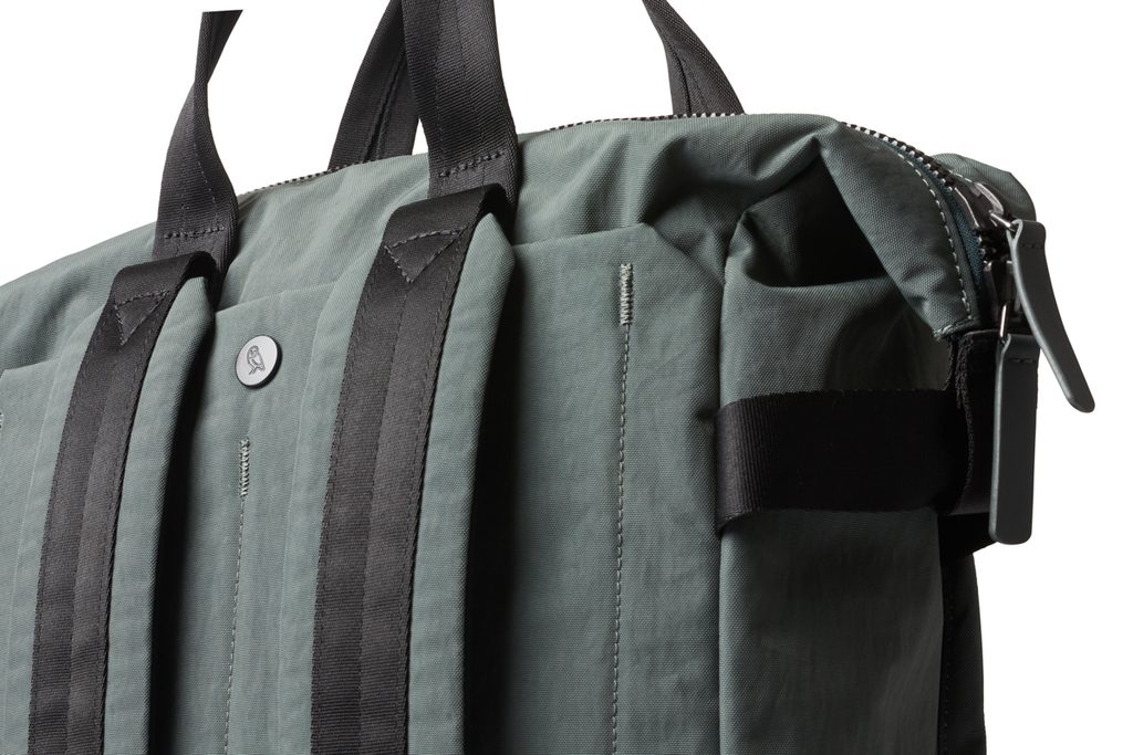 Tokyo Totepack je veľký univerzál na pomedzí batohu a tašky - v tú ho premeníte samotným zastrčením polstrovaných ramenných popruhov. Zo silne neformálneho batohu tak v okamihu získate pomerne formálnu tašku. Vo vnútri nájdete pre Bellroy typicky premyslené usporiadanie s vystuženým vreckom na 15'' notebook, dvoma mäkkými bočnými vreckami s nevšedným horným uzatváraním, zapínacím malým vreckom na cennosti a samozrejme s hlavným vnútorným vreckom. Na vonkajšej strane sú zasa pripravené vertikálne vrecká na zips s rýchlym bočným prístupom.