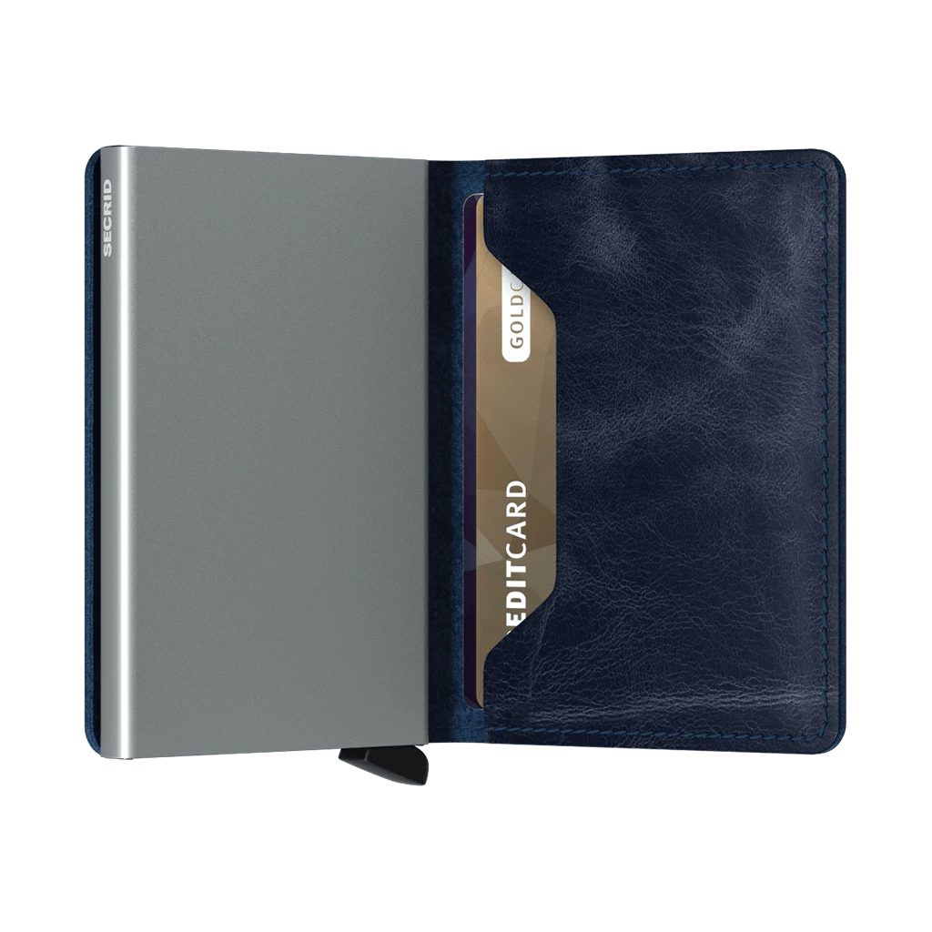 Hlavnú úlohu v ňom zohráva priehradka na karty - bez nich sa dnes prakticky nedá žiť. Preto je jadrom peňaženky Secrid ľahké a tenké hliníkové puzdro. Pojme 4 až 6 kariet v závislosti od toho, či sú alebo nie sú embosované. Prístup k nim je jednoduchý - pomocou plastového výsuvného ťahadla. Vďaka patentovanej konštrukcii a použitému materiálu poskytuje puzdro aj ochranu RFID proti diaľkovému kopírovaniu kariet.