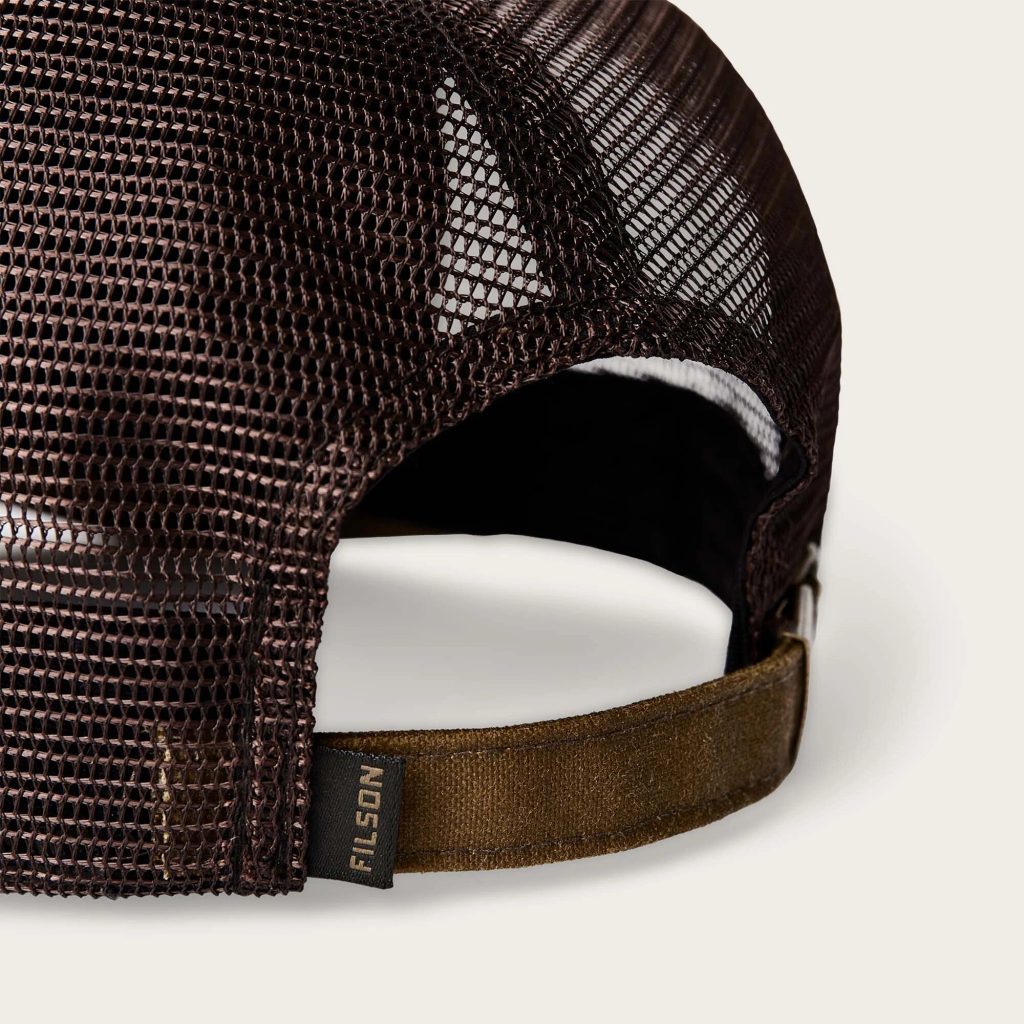 Trochu netradičná šiltovka „truckerka“ americkej workwearovej značky Filson. Je zaujímavá hlavne materiálom: predok je totiž vyrobený z tzv. Tin Cloth voskovanej bavlny, ktorá je typická pre Filson. Táto zaistí, že šiltovka vám dlho vydrží, neroztrhá sa.