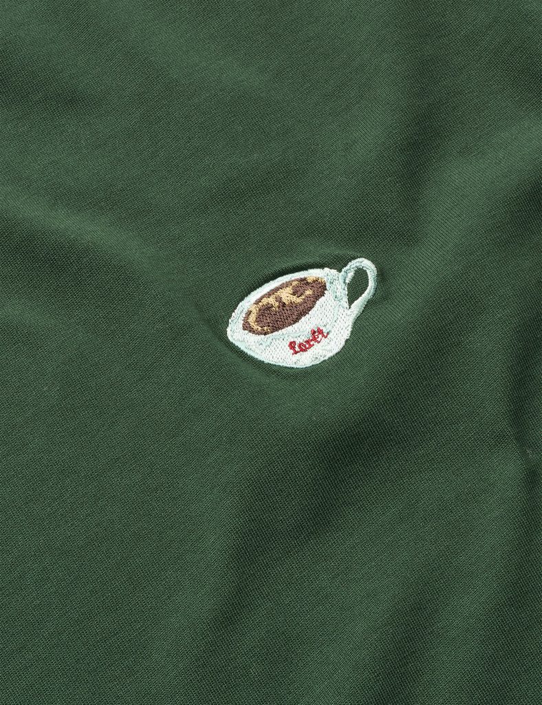 Klasické bavlnené tričko, ktoré vám bude slúžiť dlho. Je zelenej farby, plné duše, navyše obohatené o príjemnú kávičku na ľavej strane hrudníka. Tak si dajte.