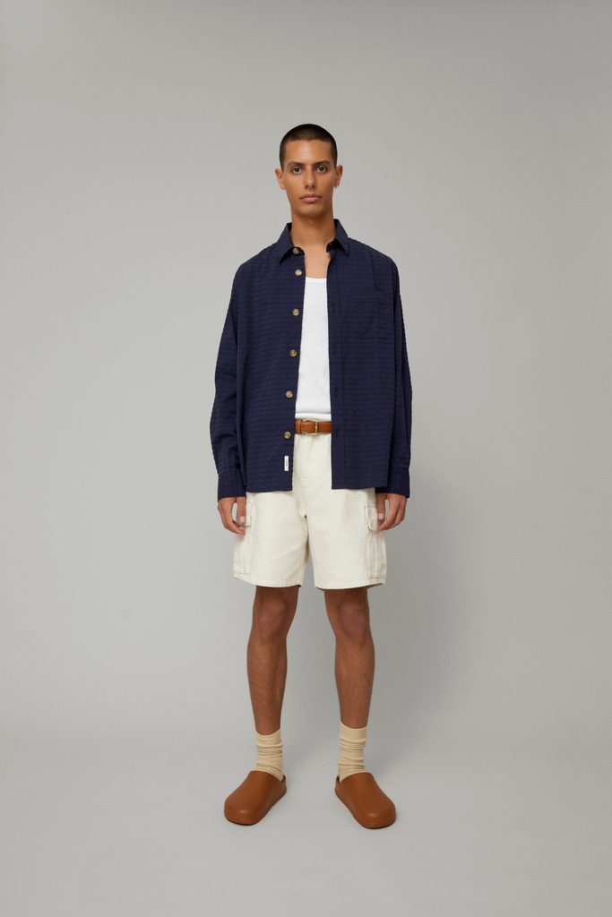 Seersucker (meno pravdepodobne pochádzajúce z perzských slov pre mlieko a cukor) je vyrábaný z dvoch nití s rôznymi zrážanlivosťami, vďaka čomu je navodený práve onen plastický efekt. Popri tejto textúre má košeľa univerzálny klasický strih, bežný golier a dlhé rukávy s manžetami na klasické gombíky na predlaktiach.