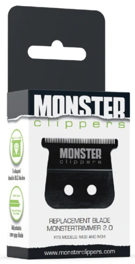 Náhradné T-blade čepele v inovovanom variante pre strojčeky Monstertrimmer (M03) a nový Cerberus Trimmer. Oproti predchádzajúcej variante má dvojitá čepeľ diamond-like coating (povlak diamantového typu) a skosené zuby, ktoré strihajú plynulejšie a neťahajú vlasy.