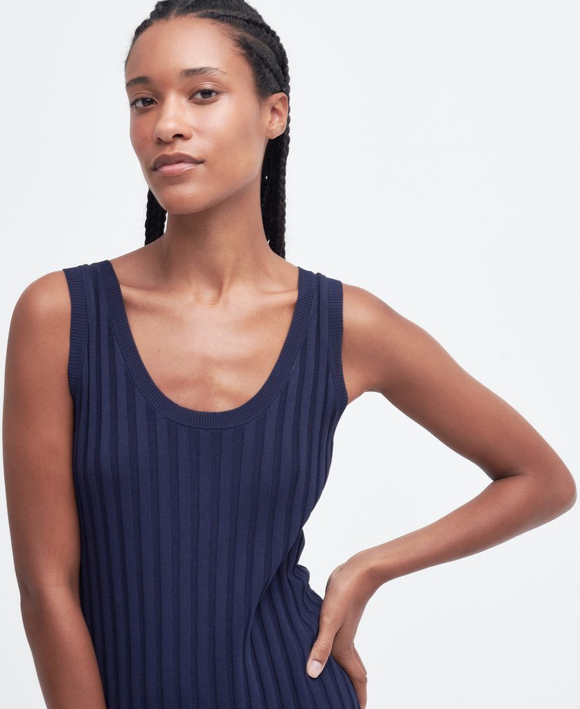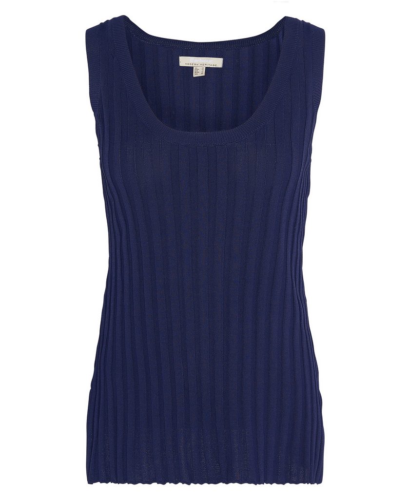 Ľahký letný top vyrobený z príjemne jemnej zmesi viskózy a polyamidu. Tmavomodrá farba a bezrukávový dizajn umožňujú nosenie samostatne, ale nebráni sa ani vrstveniu pre prechodné mesiace. Dizajn vhodne dopĺňa drobné rebrovanie po celom obvode výstrihu a ramienok a decentná doštička s logom vzadu pro krku.